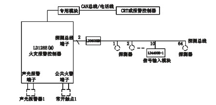 六、利達區域火災報警控制器 JB-QB/LD128E(M)-64系統框圖