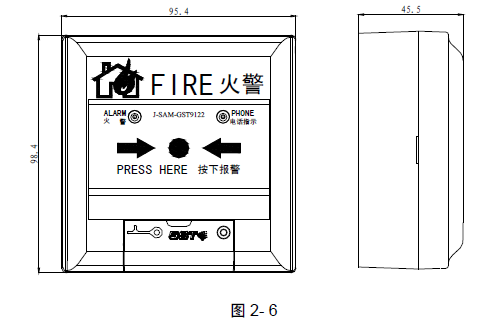 三、海灣J-SAM-GST9122 手動火災報警按鈕外形示意圖如圖2- 6
