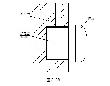 本編址接口模塊采用明裝,當(dāng)進線管預(yù)埋時,可將底盒安裝在86H50型預(yù)埋盒上,安裝方法如圖2-38;當(dāng)進線管明裝時,采用B-9310型后備盒安裝方式,具體使用方法見第二章3.6節(jié)的B-9310。底盒與上蓋間采用拔插式結(jié)構(gòu)安裝,拆卸簡單方便,便于調(diào)試維修。